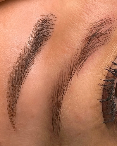 Técnica avanzada de trazos finos y orgánicos que imitan el crecimiento real del vello, logrando un efecto elegante y realista.